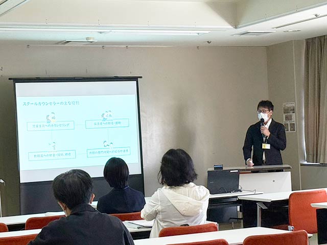 また、当院職員からもスクールカウンセラーやスクールソーシャルワーカーの活用に関する案内や、フリースクールソフィアの案内を行いました。大牟田市でスクールカウンセラーにも従事する職員のため、実態に沿う、具体的な相談方法が盛り込まれた内容となっていました。